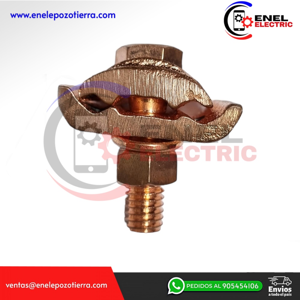 Se utilizan para sujetar 2 cables desnudos paralelos a una superficie plana, se fija con una sola llave y pueden trabajar directamente enterrados en concreto.