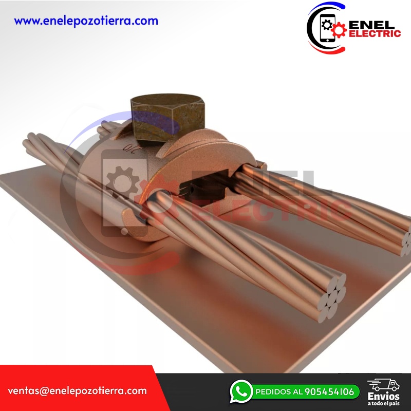 Se utilizan para sujetar 2 cables desnudos paralelos a una superficie plana, se fija con una sola llave y pueden trabajar directamente enterrados en concreto.